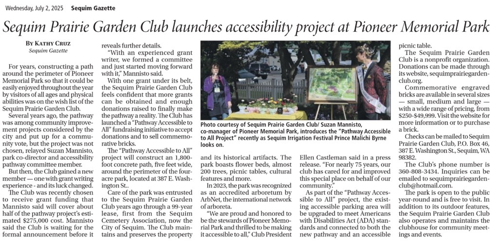 Sequim Prairie Garden Club Launches Accessibility Project at PMP - Sequim Gazette July 2, 2025
